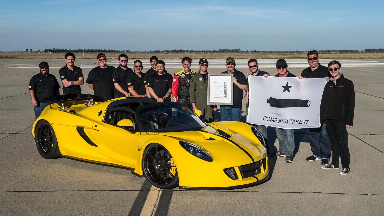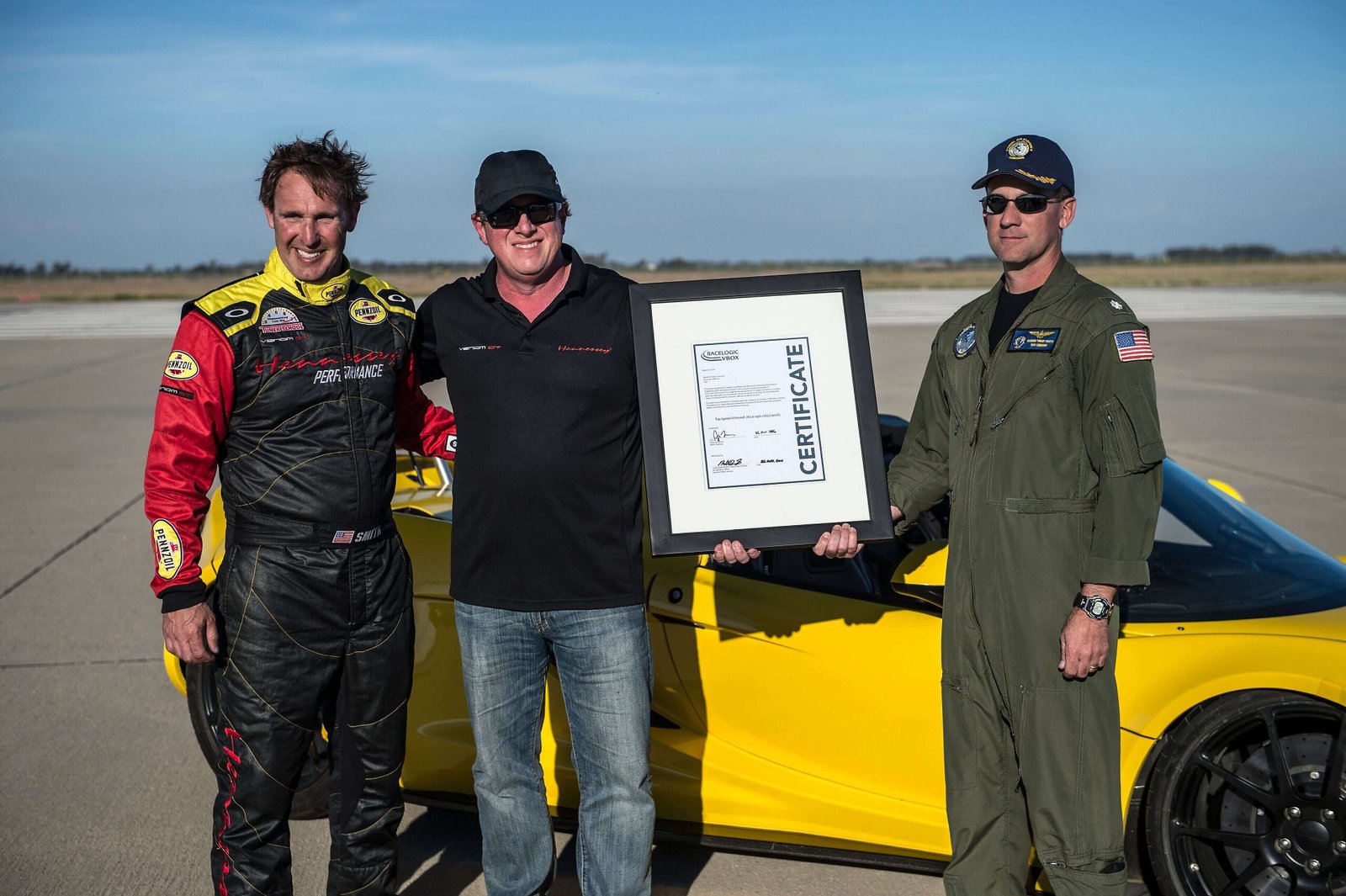 Hennessey Performance Engineering 以他们唯一知道的方式来庆祝他们的 25 周年纪念日,那就是打破纪录,速度飞快。Hennessey Venom GT Spyder 以 265.6 英里/小时的最高速度创造了敞篷跑车的新世界纪录,比之前的纪录保持者布加迪威龙 Super Sport Vitesse 快了 11 英里/小时以上。